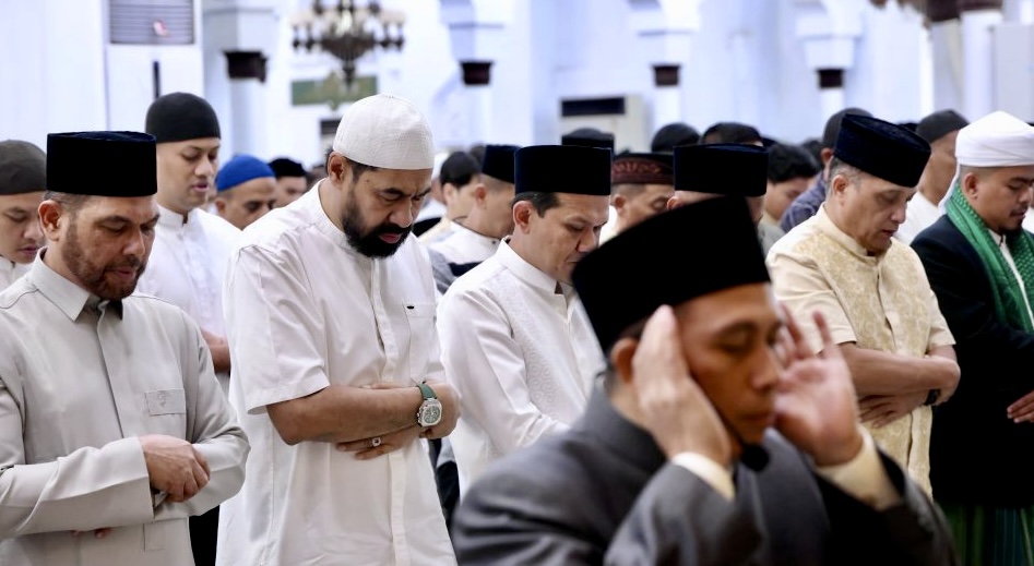 BANDA ACEH – Gubernur Aceh, H. Muzakir Manaf, bersama Wakil Gubernur Aceh, Fadhlullah, melaksanakan shalat Idul Fitri 1446 Hijriah di Masjid Raya Baiturrahman, Banda Aceh, pada Senin, 31 Maret 2025. Kegiatan ini diikuti oleh ribuan jamaah yang memenuhi dalam dan halaman masjid meskipun sempat diguyur hujan deras.