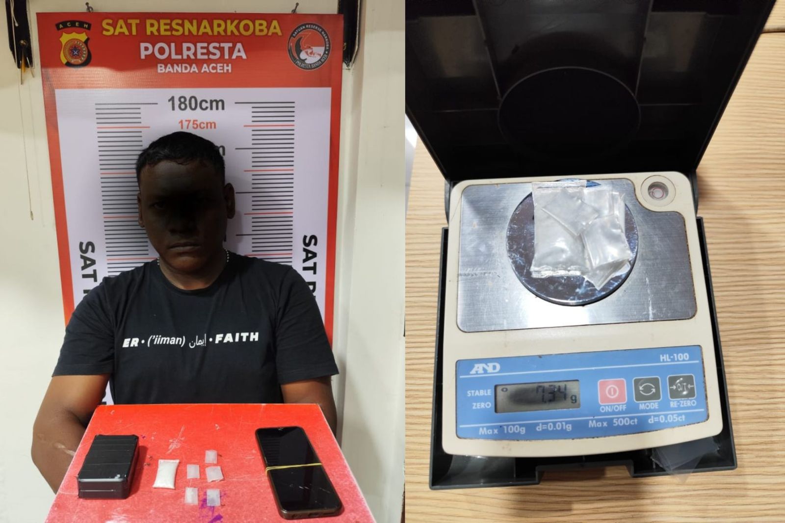 Pelaku berinisial SY (34), warga Aceh Besar. Dari penangkapan ini polisi menyita enam paket sabu seberat 7,34 gram dalam sebuah kotak rokok yang dikantongi, serta ponsel dan motor N-Max.