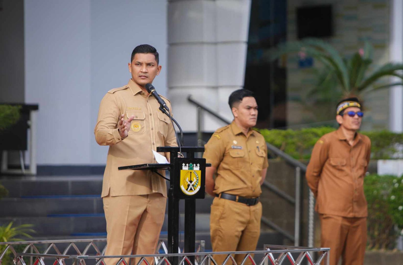 BANDA ACEH – Wakil Wali Kota Banda Aceh, Afdhal Khalilullah bertindak sebagai pembina apel gabungan Aparatur Sipil Negara (ASN) Pemerintah Kota Banda Aceh di halaman balai kota, Senin, (5/5/2025).