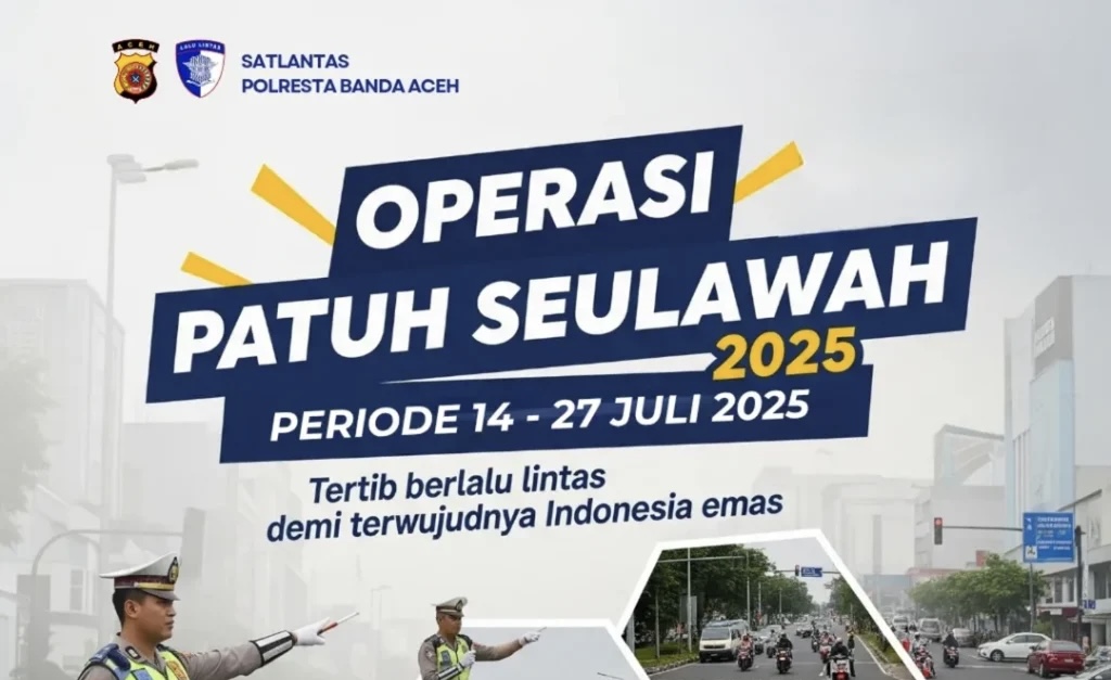 BANDA ACEH – Satuan Lalu Lintas Polresta Banda Aceh kembali menggelar Operasi Patuh 2025 yang digelar secara serentak se- Indonesia, dimulai 14 hingga 27 Juli. Sejumlah pelanggaran lalu lintas bakal menjadi fokus dalam operasi ini.