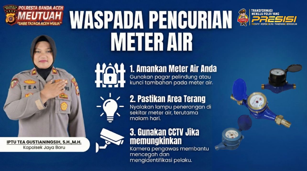 “Kami mengimbau warga agar lebih waspada terhadap aksi pencurian meteran air Perumdam Tirta Daroy yang kembali terjadi di wilayah hukum kami,” ujar Iptu Tea kepada NBA, Jumat (9/1/2026).