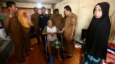 BANDA ACEH – Pj Wali Kota Banda Aceh Amiruddin menyerahkan bantuan kursi roda kepada M Ali, 55 tahun, warga Gampong Geuceu Meunara, Selasa (12/8/2023). M Ali merupakan warga kurang mampu…
