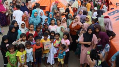 ACEH UTARA – Anak-anak selalu menjadi perhatian serius Ketua TP PKK Aceh Marlina Muzakir, setiap kali dirinya berkunjung ke lokasi pengungsian, Peulale Aneuk Miet (menenangkan anak-red) selalu dilakukan istri Gubernur…